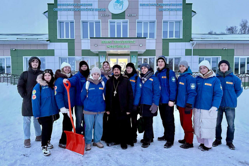 Как добавляет сайт Татарстанской митрополии, в этом году добровольческие акции по уборке снега во дворах пожилых людей в нескольких районах Республики Татарстан, в том числе в Апастовском районе, провели и социальные отряды студентов Казанского федерального университета «Матур» и «Мирас». Одной из точек их работы стало село Бишево. Здесь ребят встретил настоятель храма святого Иоанна Предтечи священник Сергий Грязнов. Он провёл для студентов экскурсию по храму, рассказал о приходской жизни и истории села, а также вместе с ними посетил бишевский сельский музей быта. Главной целью визита стала помощь пожилым сельчанам: добровольцы очистили от снега дворы и подходы к домам одиноких и маломобильных прихожан.