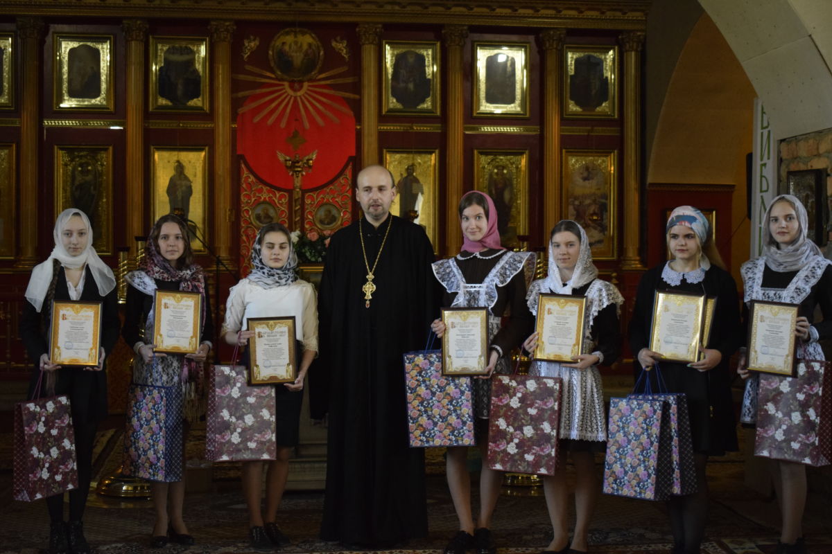 В храме во имя святых князей Бориса и Глеба рабочего поселка Вешкайма Ульяновской области состоялось награждение выпускников Вешкаймского лицея, которые на протяжении многих лет активно участвовали в православной жизни благочиния. Им вручили благодарственные письма с подписью митрополита Симбирского и Новоспасского Иосифа, книги о создании семьи и сладкие подарки.