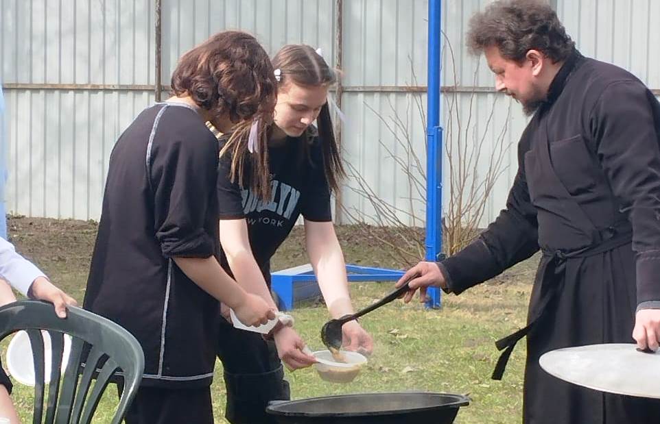 Ребята собрали прошлогодние листья и побелили стволы деревьев. Настоятель прихода иерей Антоний Сомик накормил тружеников гороховым супом, который сварил тут же, на костре.