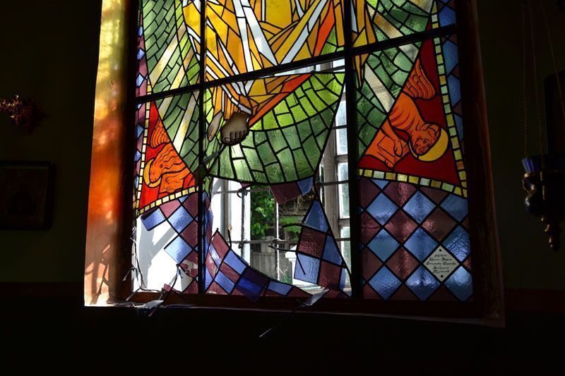 Как сообщает сайт Украинской Православной Церкви, злоумышленники пытались взломать дверь в Никольскую церковь и разбили окна в ее алтарной части. Разбиты окна и значительно поврежден витраж с изображением Спасителя в алтарной части храма преподобных Антония и Феодосия Печерских.