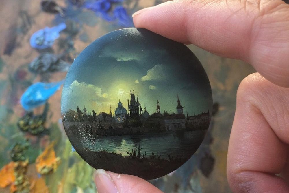 В начале августа в малом зале художественной галереи во Владимирском соборе Переславля-Залесского состоялось открытие выставки «Пейзаж на ладони». Размер работ не превышает 25 сантиметров, а некоторые из них меньше, чем спичечный коробок.