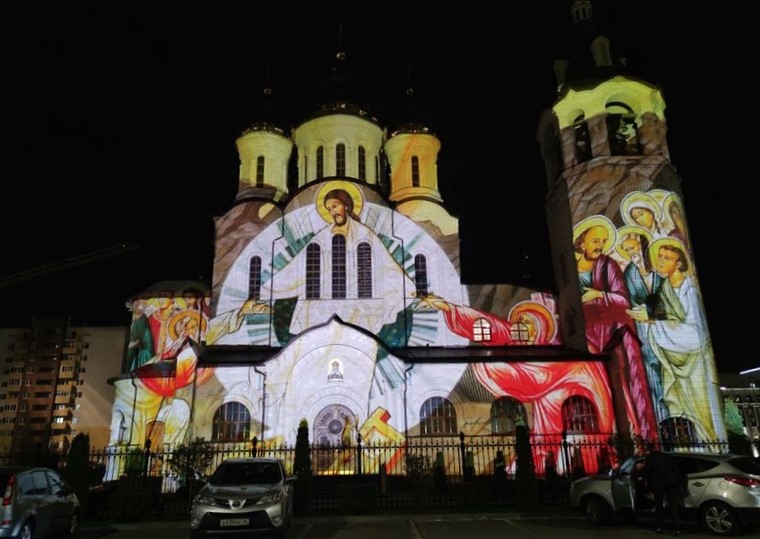 Показ уникальной видеопроекции, созданной специально для одного из крупнейших храмов региона, начался Пасхальной ночью 20 апреля 2025 года. Презентация также была украшена праздничной символикой, такой как куличи, свечи, вербы, пасхальные яйца.