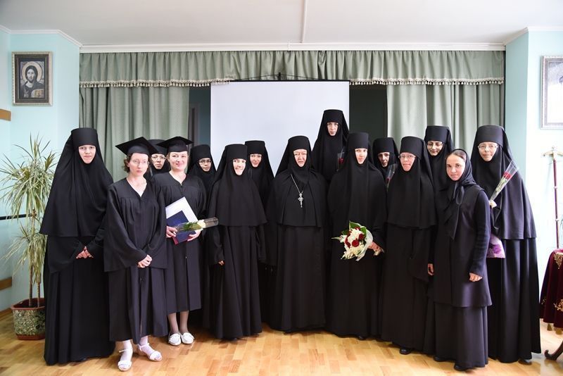 Таким образом, университетское образование вернулось туда, где и закладывалось, – в монастырские стены. Настоятельница монастыря игумения Николая (Ильина) в присутствии преподавателей университета и всех сестер обители торжественно вручила дипломы об окончании обучения семи молодым специалистам (причем три студентки получили красные дипломы с отличием), а также поздравила других семь выпускников – сестер–монахинь, окончивших в этом году Калужское духовное училище по специальностям «хоровое пение» и «иконопись». Бакалаврам церковных искусств дипломы были ранее вручены митрополитом Калужским и Боровским Климентом 1 июля.