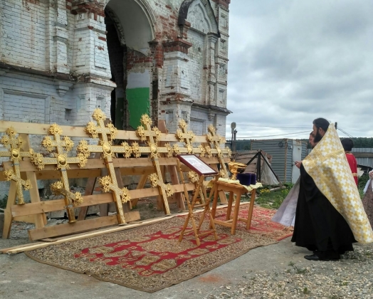 «Перед нынешней Пасхой мы установили главный крест, а нынче перед Троицей установили еще четыре. Все ближе и ближе мы к заветной цели — войти в свой родной храм», — рассказал настоятель храма священник Кирилл Гупало. Общине предстоит еще много работы по внешней и внутренней отделке.