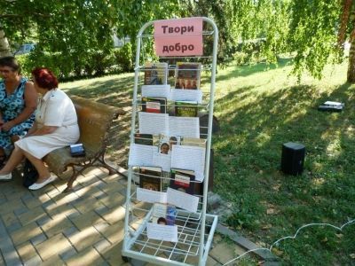Программа праздника была разнообразна, в нее входили беседа у книжной выставки «Твори добро», раздача флаеров с цитатами о добре и милосердии, просмотр фильма Михаила Шадрина «Форпост».