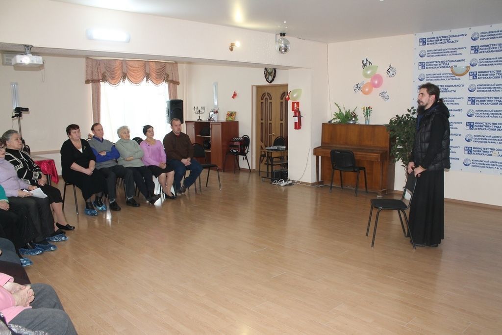 Иеромонах Покровского кафедрального собора отец Иринарх (Ишмухамедов) встретился с пенсионерами, посещающими Школу третьего возраста, и рассказал о наступившем 28 ноября Рождественском посте, сообщает Министерство социального развития и труда Астраханской области.