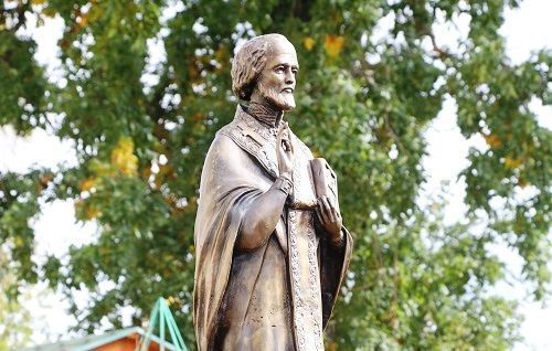 Бронзовую скульптуру передал в дар епархии благотворительный Фонд святителя Николая Чудотворца (Москва). Святитель изображен благословляющим правой рукой; в левой руке у него – Евангелие. Это уже 34-й по счету памятник, установленный Фондом, три из них стоят в Белоруссии. Ранее памятники святому Николаю были освящены в Минске и Полоцке.