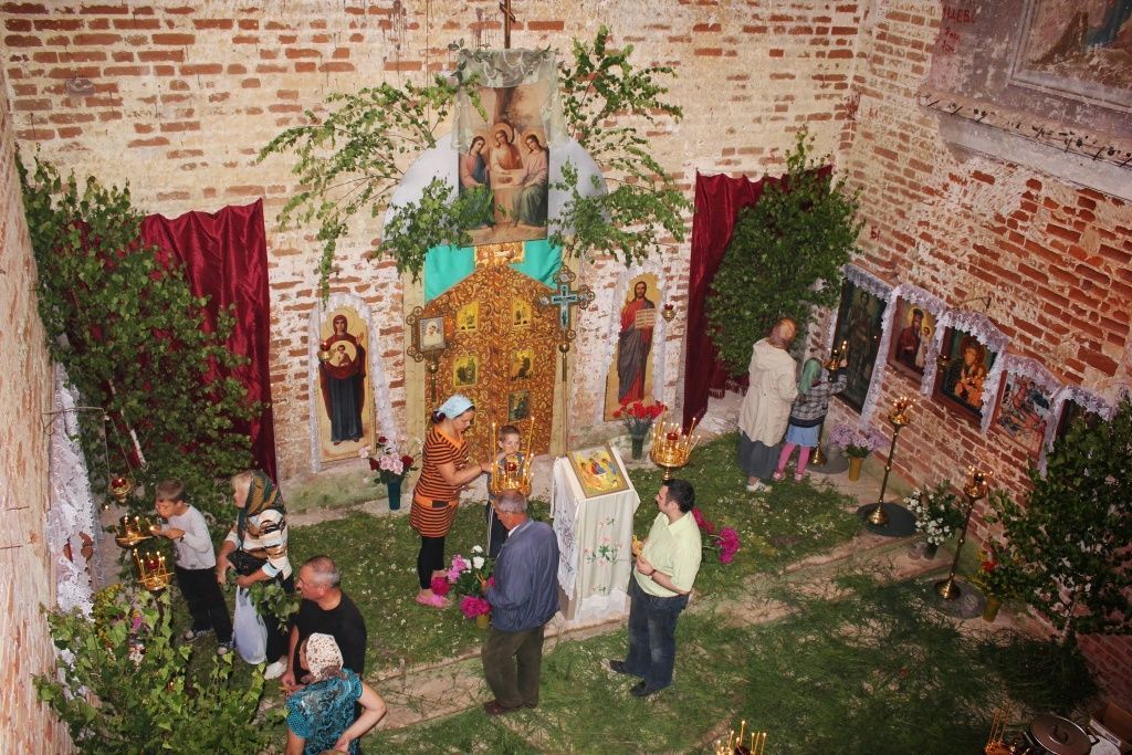 На престольный праздник приехали гости из Москвы. Тех, кто принимает участие в судьбе возрождающейся Троицкой церкви, в этот день соединила общая молитва за литургией, а затем все вместе собрались на праздничную трапезу, сообщает сайт храма Девяти мучеников Кизических.