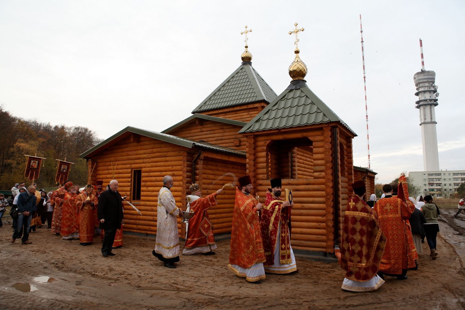Свято-Димитриевская община была образована в октябре 2002 года по благословению архиепископа Берлинского и Германского Феофана. Вначале было много сложностей в организации приходской жизни, богослужения совершались по субботам в церкви святого Андрея Первозванного женского католического монастыря. Наконец, удалось достигнуть договоренности с городскими властями об аренде земли для строительства храма. Возведение деревянной церкви во имя великомученика Димитрия Солунского завершилось осенью 2012 года, информирует сайт храма святого Иоанна Кронштадтского в Гамбурге.