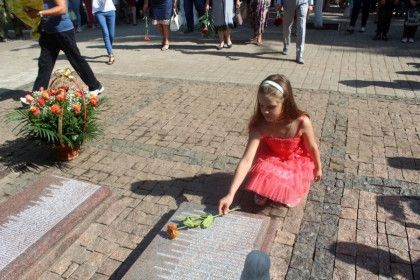 После литии была объявлена минута молчания. К мемориалу несли букеты цветов и игрушки – во время обстрела в Горловке погибли 15 детей.