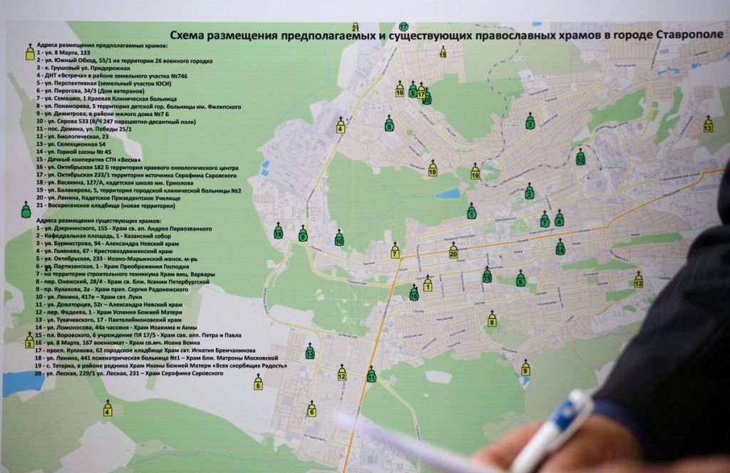 На встрече 15 апреля митрополит Ставропольский и Невинномысский Кирилл обсудил главой администрации краевого центра Андреем Джатдоевым механизм реализации епархиального проекта «20-20». В рамках него до 2020 года в Ставрополе планируется построить 20 новых храмов.