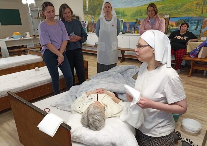 Первые двенадцать сестер милосердия прошли обучение на медицинских курсах, которые провели преподаватели московского Свято-Димитриевского училища сестер милосердия.