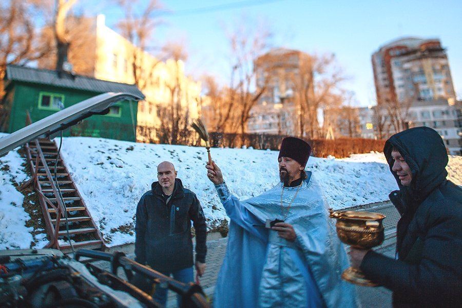 В день памяти Архистратига Божия Михаила и прочих Сил бесплотных в Свято-Иннокентиевском храме Хабаровска по завершении уставного богослужения был отслужен молебен, за которым путешественники вместе с остальными прихожанами молились о благополучном завершении экспедиции. После этого члены общины храма проводили семью путешественников в дальнюю дорогу.