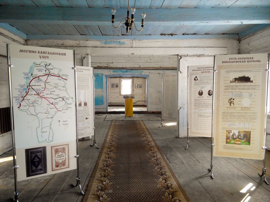Экспозиция первого и пока единственного в Якутии музея истории Православия расположилась в стенах Мегинского Богородицкого храма. Церковь − самую большую в восточной части Якутии − построили в 1823 году, она считалась благочинническим храмом Заречья. С 1930 года церковное здание использовали как склад, учебные мастерские, спортзал, краеведческий музей. Последние десятилетия храм пустовал; чтобы восстановить Б