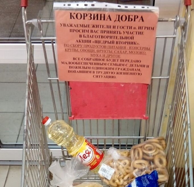 До 4 декабря, в рамках Дня благотворительности “Щедрый Вторник”, в поселке Игрим Ханты-Мансийского автономного округа проходит акция “Тележка добра”.