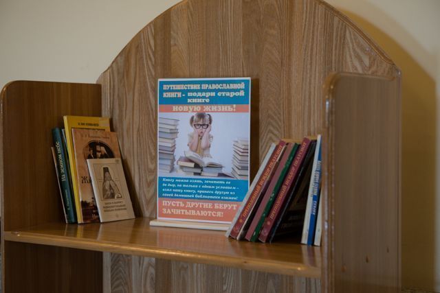 В нижнем храме собора на специально изготовленном передвижном стеллаже разместили несколько книг. Там же можно увидеть правила пользования библиотекой: «Книгу можно взять, зачитать ее до дыр, но только с одним условием − взял нашу книгу, принеси другую из своей домашней библиотеки взамен! Пусть другие берут и зачитываются!»