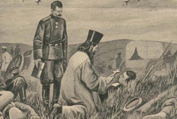 Из числа богослужебных предметов, которые могли сопровождать участников Первой мировой войны и военное духовенство, можно выделить малое Евангелие (1877 г.), служебник, по которому священник отправлял требы (1862 г.), крест и две створки-складни (XIX в.), святцы (XIX в), икона Божией Матери «Одигитрия» (начало XX века). Все эти экспонаты переданы на время работы экспозиции из фондов Музея истории Православия на земле Кузнецкой.