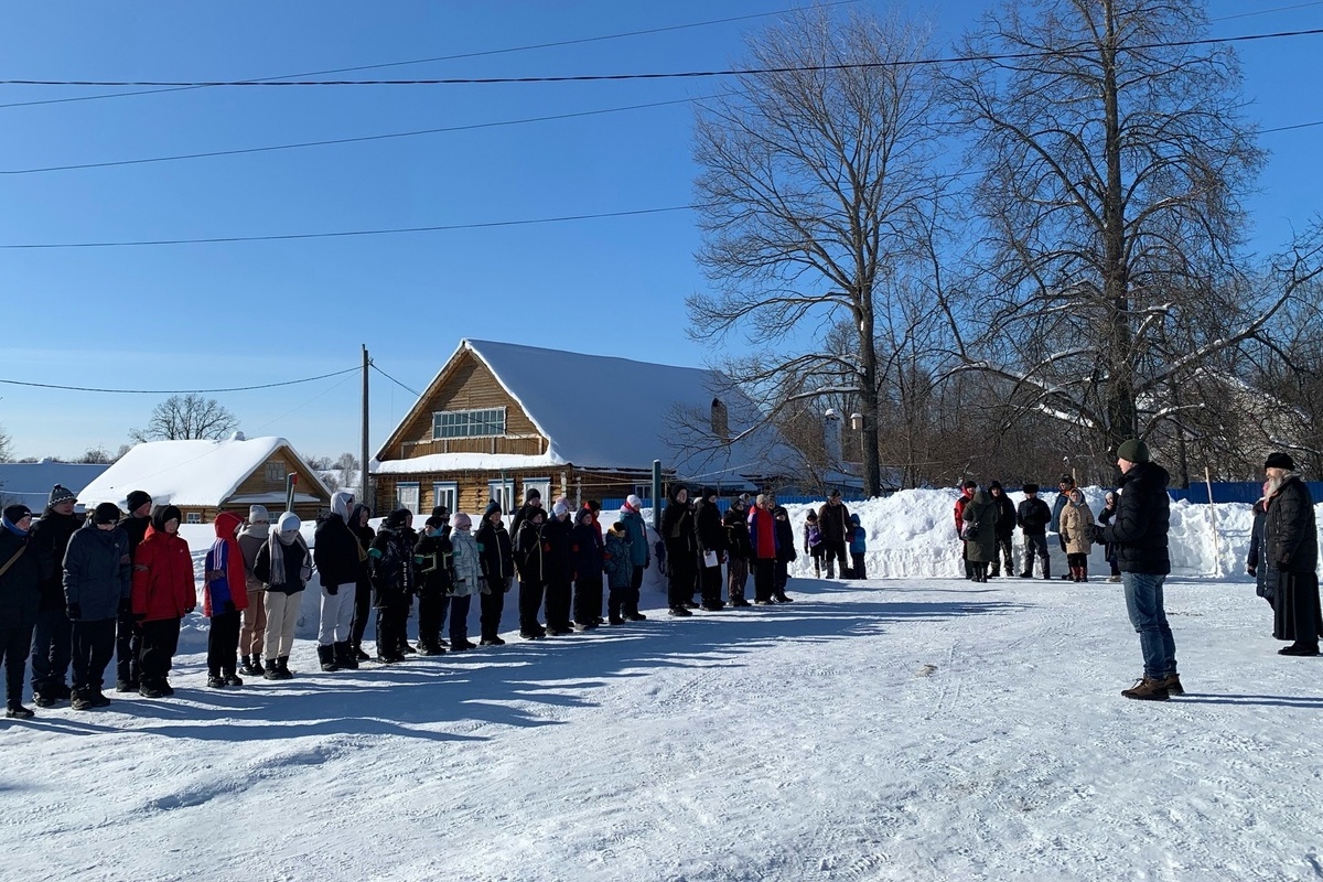 Приходы.ру 16.02.2024. В праздник Сретения Господня и День православной молодежи 15 февраля по окончании литургии в Рождественском храме села Арино (Моркинский район республики Марий Эл) учащихся местной школы пригласили на военно-патриотическую игру «Зарница».