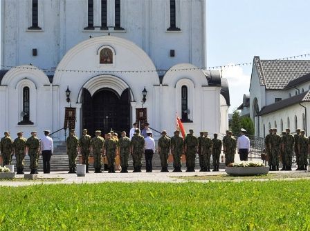 Торжественный ритуал вручения боевого оружия новобранцам весеннего призыва совершили 2 июля, в канун государственного праздника Беларуси, на территории Центра духовного просвещения и социального служения Белорусского Экзархата «Всех скорбящих Радость». Церемонию вручения возглавил первый заместитель командира части 5529, начальник штаба майор Виктор Юрьевич Жадобин.