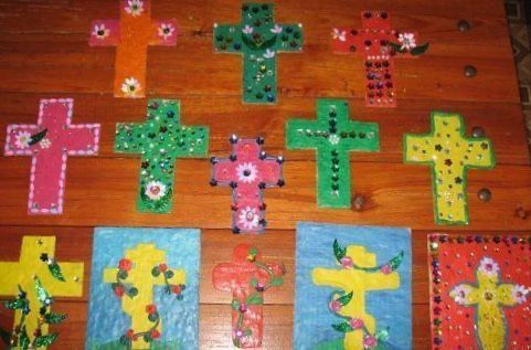 В новосибирской воскресной школе дети сделали поделки в виде крестиков