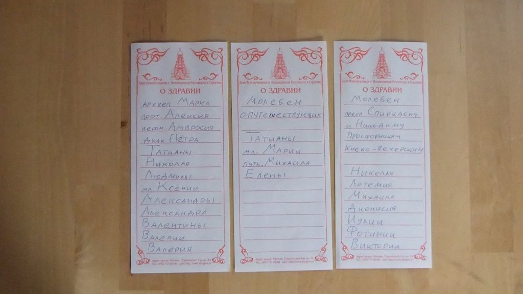 Прихожане пишут записочки о здравии и упокоении на каждую службу, их бывает от 40 до 130 в день, настоятель отвечает: «Принято, помолимся!».