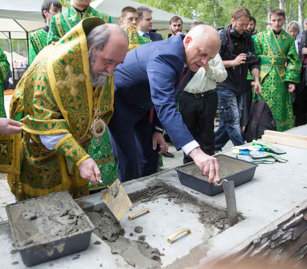 Как сообщает сайт Омской епархии, по окончании молебна митрополит Владимир освятил Поклонный крест, который водрузили священнослужители Омской епархии, а затем был освящен закладной камень – его на месте будущей обители заложили православный иерарх и глава региона.