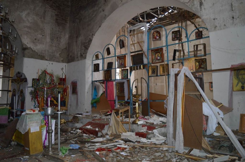 Не один обстрел пережила и местная Свято-Троицкая церковь. Последний из них произошел уже после подписания в феврале Минских договоренностей. Во время обстрела стены храма устояли, хотя и были сильно посечены осколками, но снаряды пробили крышу и разорвались внутри. Сейчас в церкви практически нет крыши, разбит алтарь, повреждено множество икон, сообщает пресс-служба Северодонецкой епархии.
