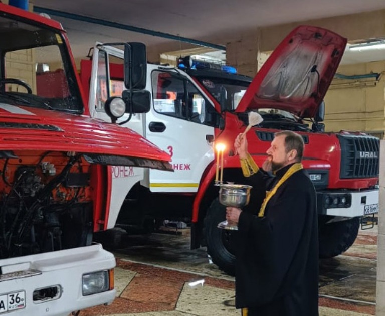 Главная - Вести приходов - В пожарной части Воронежа совершено освящение новой техники