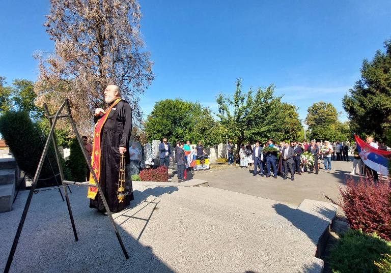 Перед началом богослужения состоялась торжественная церемония возложения к мемориалу венков. Как сообщает телеграм-канал МИД Российской Федерации, в мероприятии приняли участие государственный секретарь Министерства труда, занятости, по делам ветеранов и социальным вопросам Сербии Нинослав Йованович, государственный секретарь Министерства по вопросам семьи и демографии Сербии Никола Вукелич, заместитель министра по вопросам села Сербии Горан Миленкович, дипломаты Посольства России, представители органов власти ряда сербских городов и муниципалитетов, ветеранских и общественных организаций, объединений российских соотечественников и обществ российско-сербской дружбы.