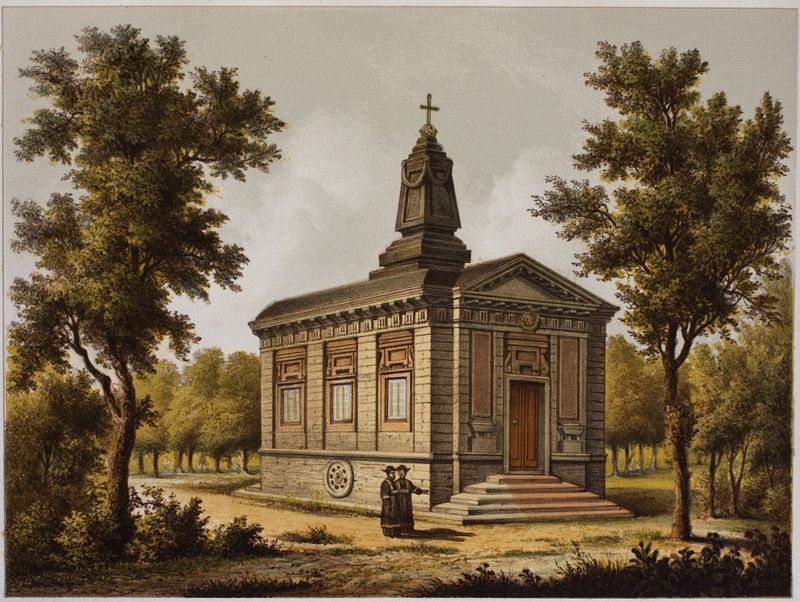 К несчастью, век ее был недолог: в марте 1801 года Александра Павловна скончалась после тяжелых родов. Она завещала похоронить себя на территории любимого поместья в Иреме. Первый камень в фундамент иремского храма был заложен по распоряжению палатина Иосифа в 1801 году. Храм спроектирован придворным архитектором Санисло Хеппе и освящен в 1803 году протоиереем Андреем Самборским – духовником Александры Павловны, который сопровождал ее со времени отъезда из Санкт-Петербурга. Захоронение останков Великой княгини в Иреме состоялись в сентябре 1803 года.