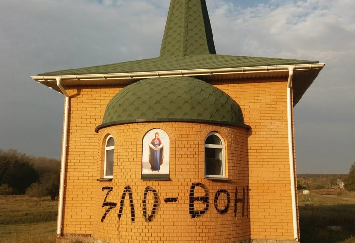 На стене Покровского храма в Писаревке обнаружены надписи оскорбительного содержания черной краской. Такие же надписи нанесены на забор Успенского храма Хотеня. Пострадавшие общины обратились по поводу актов вандализма в правоохранительные органы и органы местной власти.