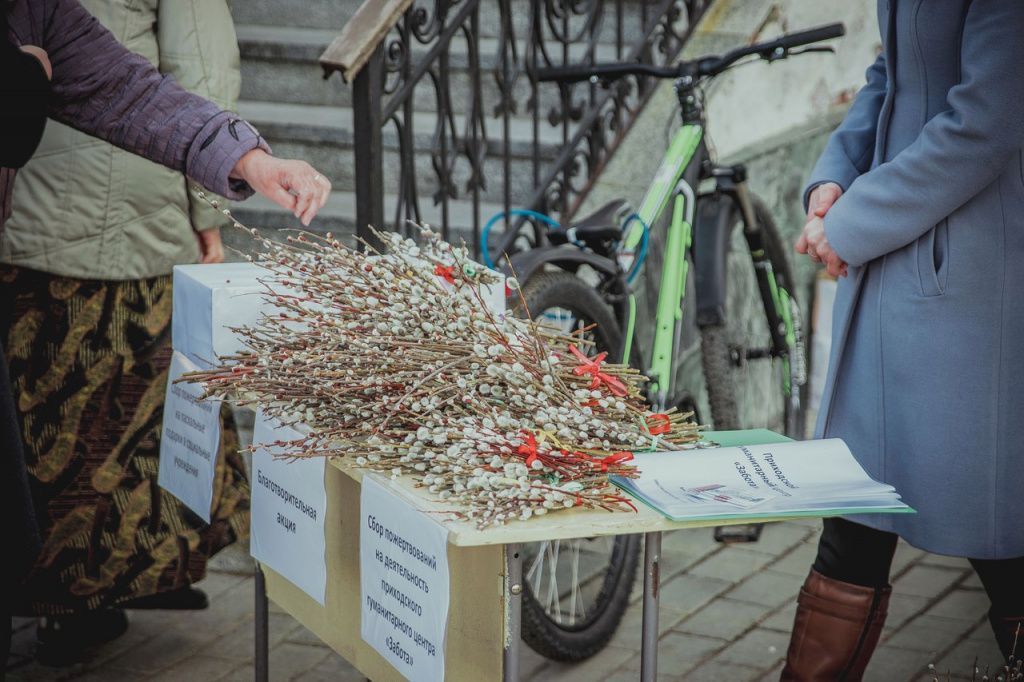 Ребята подготовили красивые букеты из вербы для тех, кто пришел в храм на праздние Входа Господня в Иерусалим. Желающие могли взять букетик и сделать любое пожертвование на деятельность приходского гуманитарного центра «Забота», в котором трудятся сами участники «Света». Собранные средства предназначены на пасхальные подарки в Центральный дом-интернат для престарелых и инвалидов и Центр социальной адаптации для лиц без определенного места жительства, а также на помощь людям, обращающимся в «Заботу» за помощью.