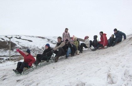 А после богослужения молодежь «Святой Руси» вместе со школьниками отправилась в поход. Участников прогулки ждали разнообразные развлечения на свежем воздухе, особым успехом пользовалось катание на санках – благо, склонов в Пятигорске предостаточно.