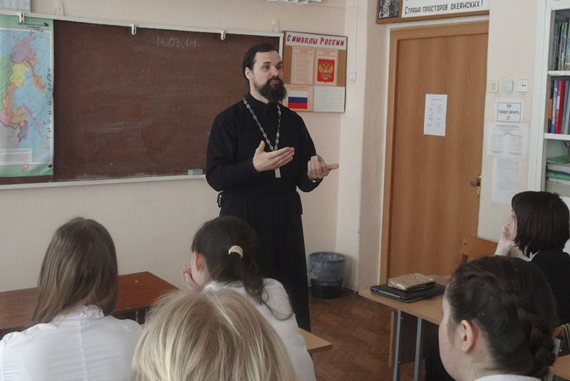 В дни Великого поста благочинный Новотроицкого округа, настоятель Петропавловского собора Новотроицка иерей Сергий Кваша посетил несколько средних школ.