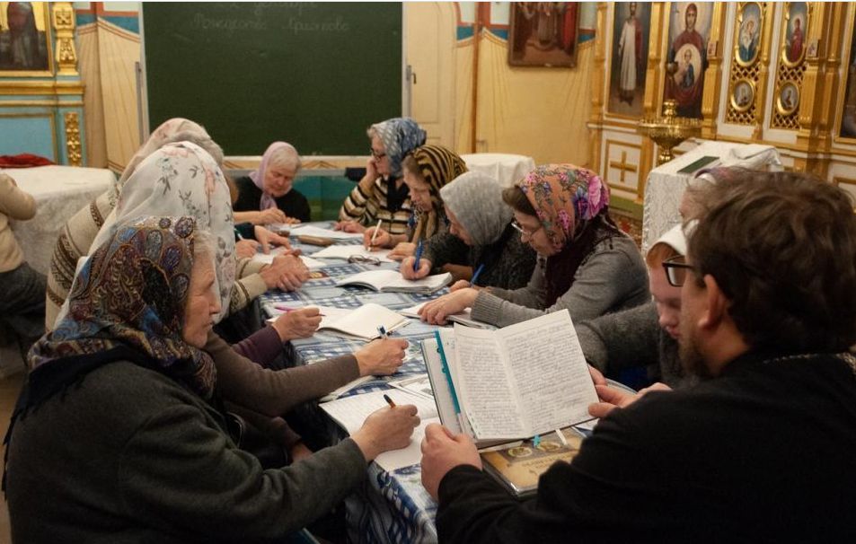 Владимирский священник разбирает с прихожанами богослужебный устав