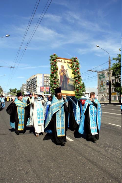 Более двухсот лет насчитывает традиция принесения в начале лета из Боголюбова во Владимир чудотворной иконы Божией Матери «Боголюбская». Так и в этом году 1 июня состоялся крестный ход из Ново-Алексеевского монастыря в Успенский кафедральный собор Владимира. По пути к богомольцам присоединились прихожане Михаило-Архангельского и Князь-Владимирского храмов, сестры Георгиевского сестричества, братия Богородице-Рождественской обители.
