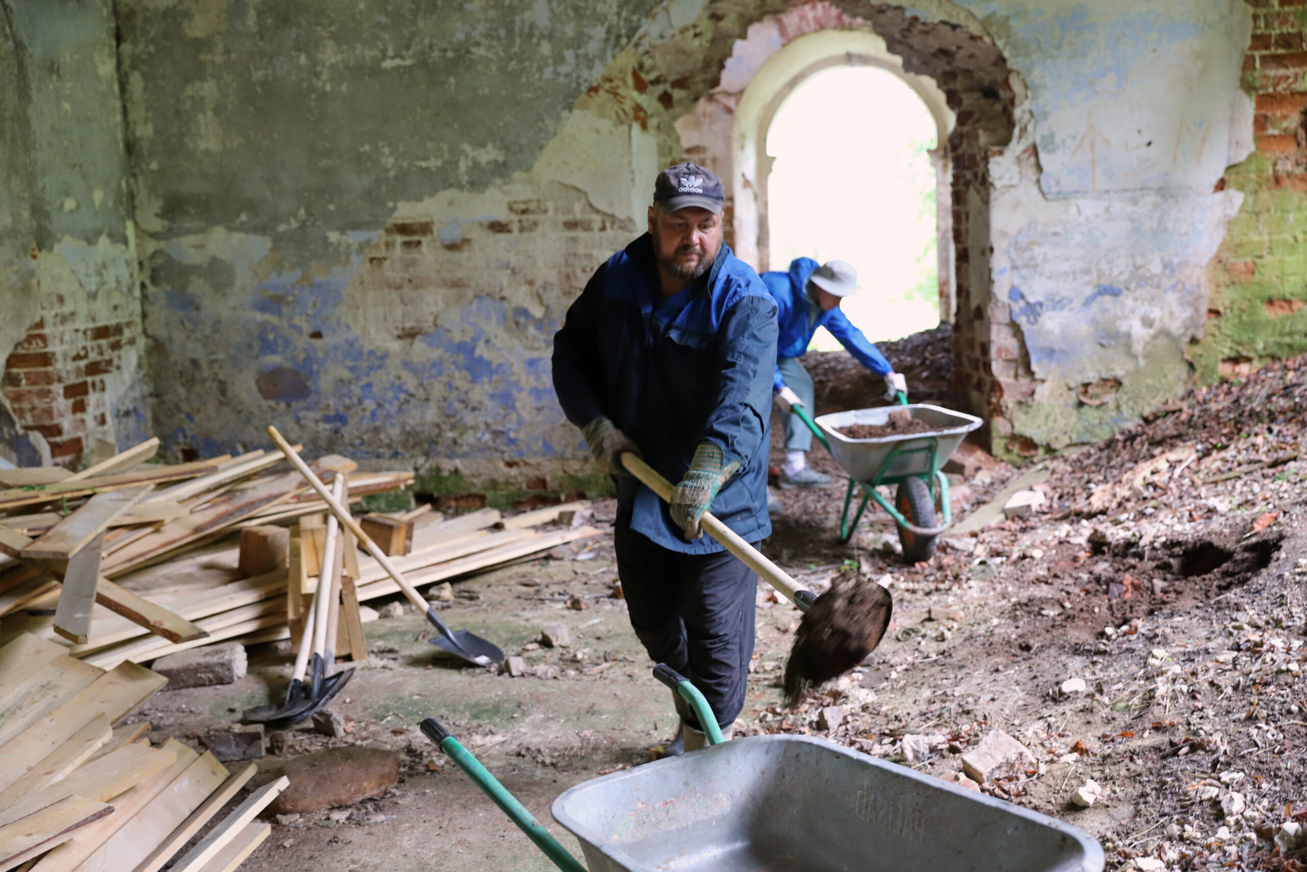 В течение дня священники спилили деревья и кустарники, которые выросли вплотную к стенам храма, и убрали дерево, упавшее на храм; скосили траву вокруг церкви; сделали деревянные щиты, которыми закрыли окна, чтобы внутрь храма не попадали дождь и снег, очистили храм от мусора, окопали его по периметру, освободив стены от наносной земли, которая способствовала намоканию кирпичной кладки и разрушению цоколя.