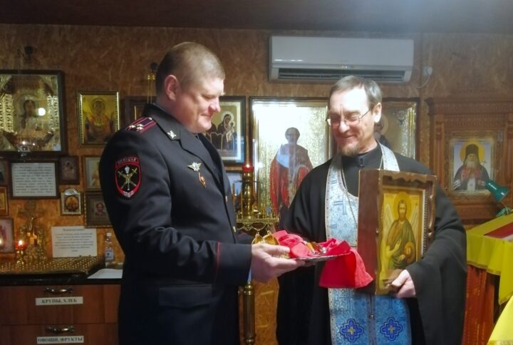 В завершение трудового дня в Городецком Феодоровском мужском монастыре секретарь Епархиального управления, наместник обители игумен Антоний (Скорик) вручил волонтером памятные подарки.