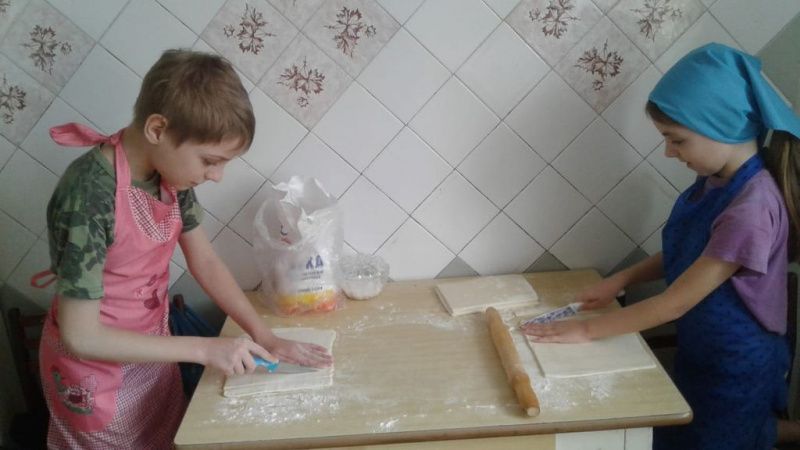 В Неделю 4 Великого поста с помощью мам и бабушек дети испекли каждый на своей кухне лесенки, а после делились впечатлениями и фотографиями, сообщает сайт Шахтинской епархии. Не останавливается и процесс изготовления костюмов к пасхальному концерту.