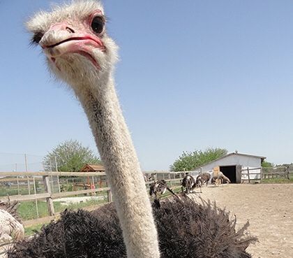 На ферме выращивается один из самых крупных видов птиц — черный африканский страус.