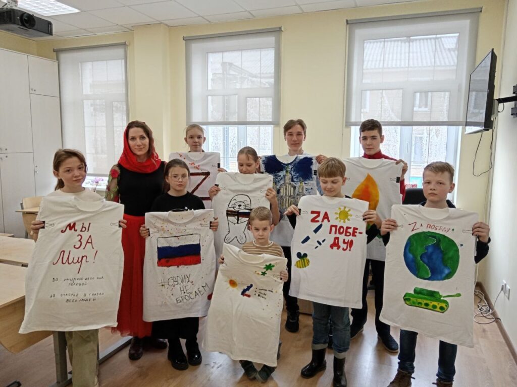 Специально для юных прихожан провели мастер-класс по росписи ткани. Дети украсили футболки рисунками на темы «Za мир во всем мире» и «Подвиг наших бойцов глазами детей». Перед творческим занятием клирик собора священник Сергий Кузнецов рассказал воспитанникам о важности поддержки бойцов, о силе подвига и духа русского воинства.