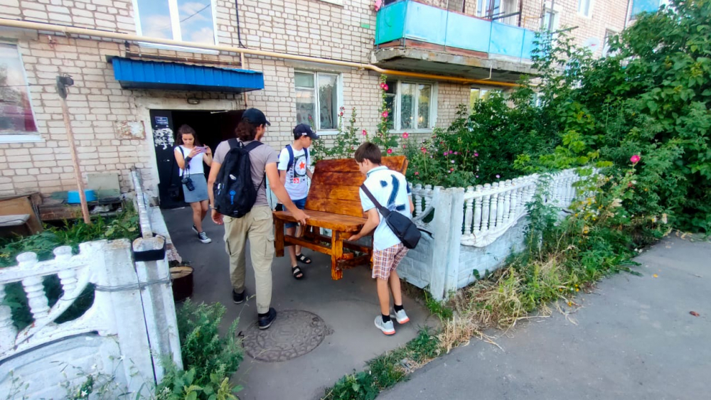 Приходы.ру. 11.08.2022. Воспитанники столярного кружка Авраамиевского храма в Болгаре Республики Татарстан принимают участие в благоустройстве городских дворов. Изготовленные скамейки дети дарят жильцам многоквартирных домов.