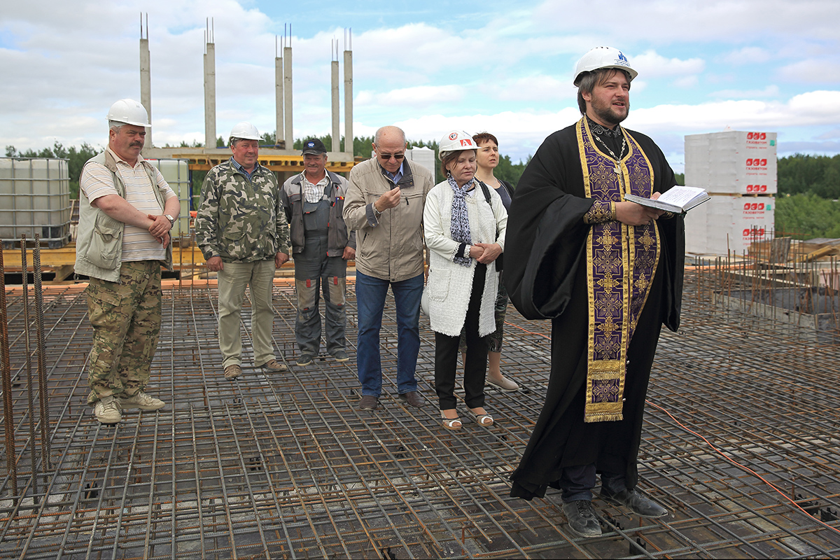 Рабочие залили бетоном алтарную апсиду и перекрытие первого этажа. Перед началом работ настоятель священник Сергий Кубышкин совершил молебен на начало доброго дела, сообщает сайт Санкт-Петербургской митрополии.