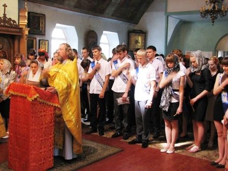 Молодые люди стоят перед порогом взрослой жизни и первые серьёзные испытания у них впереди. На праздничный молебен пришли около ста человек: выпускники, преподаватели школ и родители. Многие ребята сами изъявили желание прийти на молебен в храм и получить благословение священника.