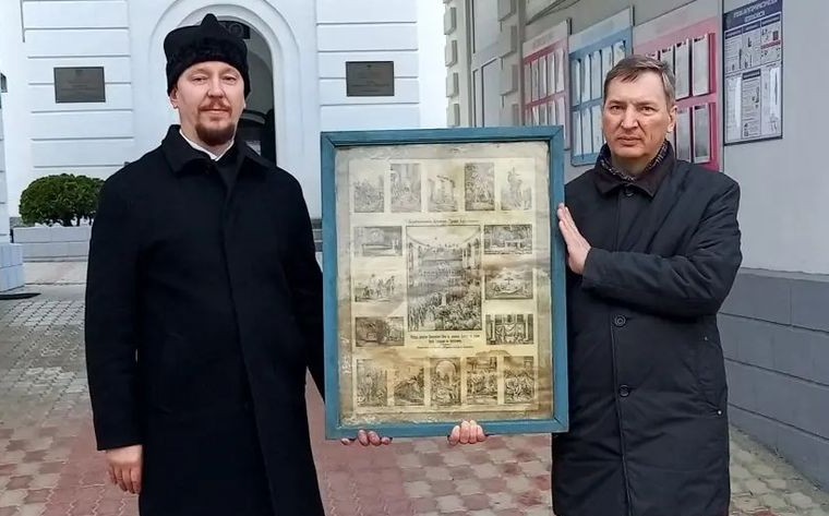 Среди экспонатов выставки паломнических евлогий был большой хромолитографический плакат начала XX века «Благословение Святого Града Иерусалима» с изображениями раздачи Благодатного огня в Великую субботу в Храме Гроба Господня, а также евангельских сюжетов Страстной седмицы. По завершении работы экспозиции плакат был подарен благочинным Верхнедонского округа, настоятелем вёшенского храма Архангела Михаила иереем Романом Митяшиным епархиальному древлехранителю Илье Шаркову. Эта паломническая евлогия будет экспонироваться на выставках в рамках тематических просветительских проектов, проводимых Шахтинской епархией.