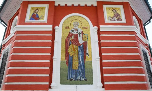 Фасады храма уже украшают мозаичные иконы, которые были установлены в конце сентября. Икона святителя Николая Чудотворца смонтирована на алтарной апсиде храма. Еще четыре мозаики нижегородских мастеров украсили северный и южный фасады церкви. Это изображения архангелов Михаила и Гавриила, святого великомученика Георгия Победоносца и святого князя Георгия Всеволодовича, основателя Нижнего Новгорода.
