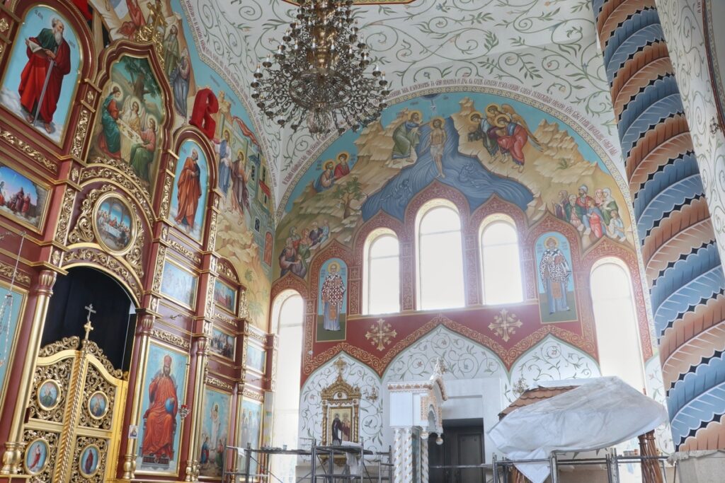К Пасхе 2020 года завершена роспись алтарной части Воскресенского кафедрального собора Бишкека. За два года художники расписали около 880 квадратных метров сводов и стен храма.