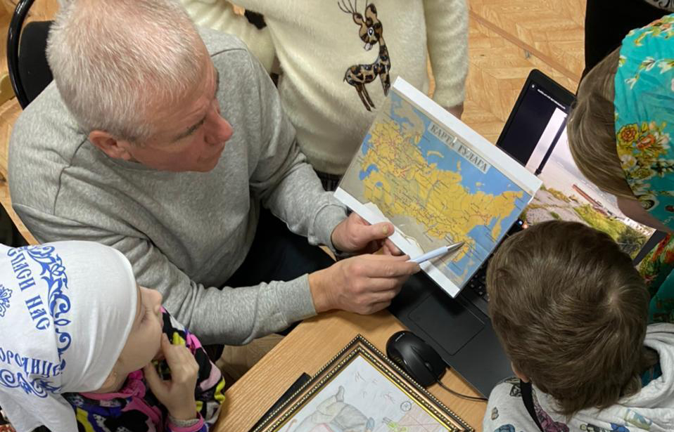 В сентябре прошлого года Александр Черепков, его жена и двоюродные сестры посетили места, ставшие последним пристанищем для их родных, и отыскали их могилы. На встрече с воспитанниками воскресной школы Александр Сергеевич показывал карты и фотографии, которые сделал на Колыме, сообщает сайт Выксунской епархии.