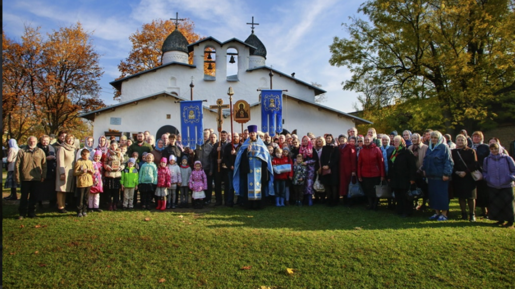 Прихожане псковского храма Рождества и Покрова Пресвятой Богородицы совершили ежемесячный крестный ход вокруг города.
