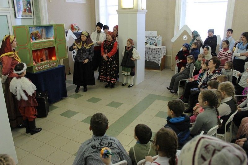 В Городской художественной галерее показал свой игровой вертеп другой гость фестиваля — фольклорный ансамбль «Вечёра» из Дальнего Константинова. Их зрителями стали семьи с детьми-инвалидами, в рамках культурной программы акции «Подарим детям Рождество». После представления православные волонтеры Центра «Радость моя!» вручили маленьким зрителям подарки.